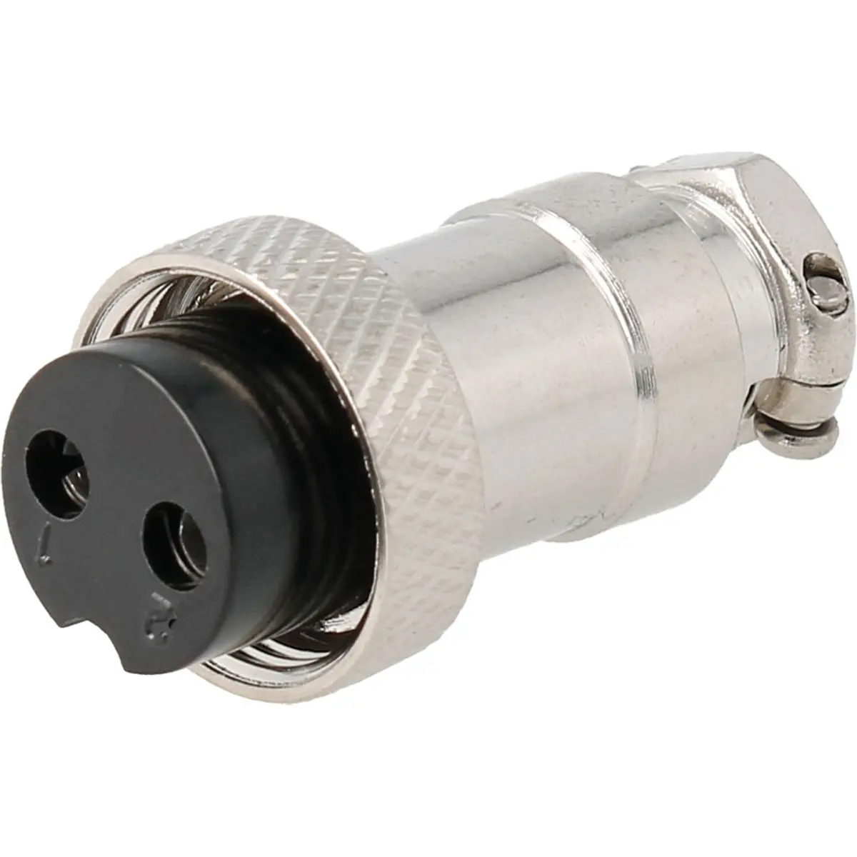 Conector fêmea de microfone com 2 pinos para cabo, concebido para montagem direta com cabo. Oferece uma ligação estável e simples, apropriada para sistemas de áudio que exigem fiabilidade e montagem rápida. Compatível com cabos de áudio padrão, facilita ligações em equipamentos de gravação, transmissão e interfaces de microfone, sem necessidade de adaptadores adicionais.