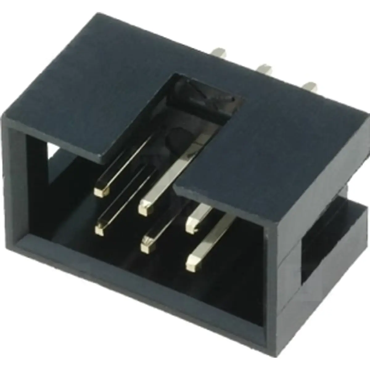 Conector macho de 6 pinos em configuração 2x3 para soldar em PCB (THT), com passo de 2.54mm. Ideal para montagens com conectores padronizados, oferece montagem por furos e contacto estável entre os pinos, evitando falhas de ligação em projetos de PCB.