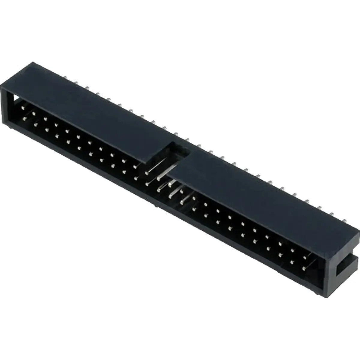 Conector macho IDC de 50 pinos, formato 2x25, para soldar em PCB (THT). Com pitch de 2,54 mm facilita ligações entre vias e energia em montagens de placa. Ideal para prototipagem, painéis e interfaces com 50 vias, assegurando fiabilidade, resistência mecânica e fácil substituição. Compatível com acessórios IDC padrão e cabeamento paralelo, permitindo montagem estável por through-hole.