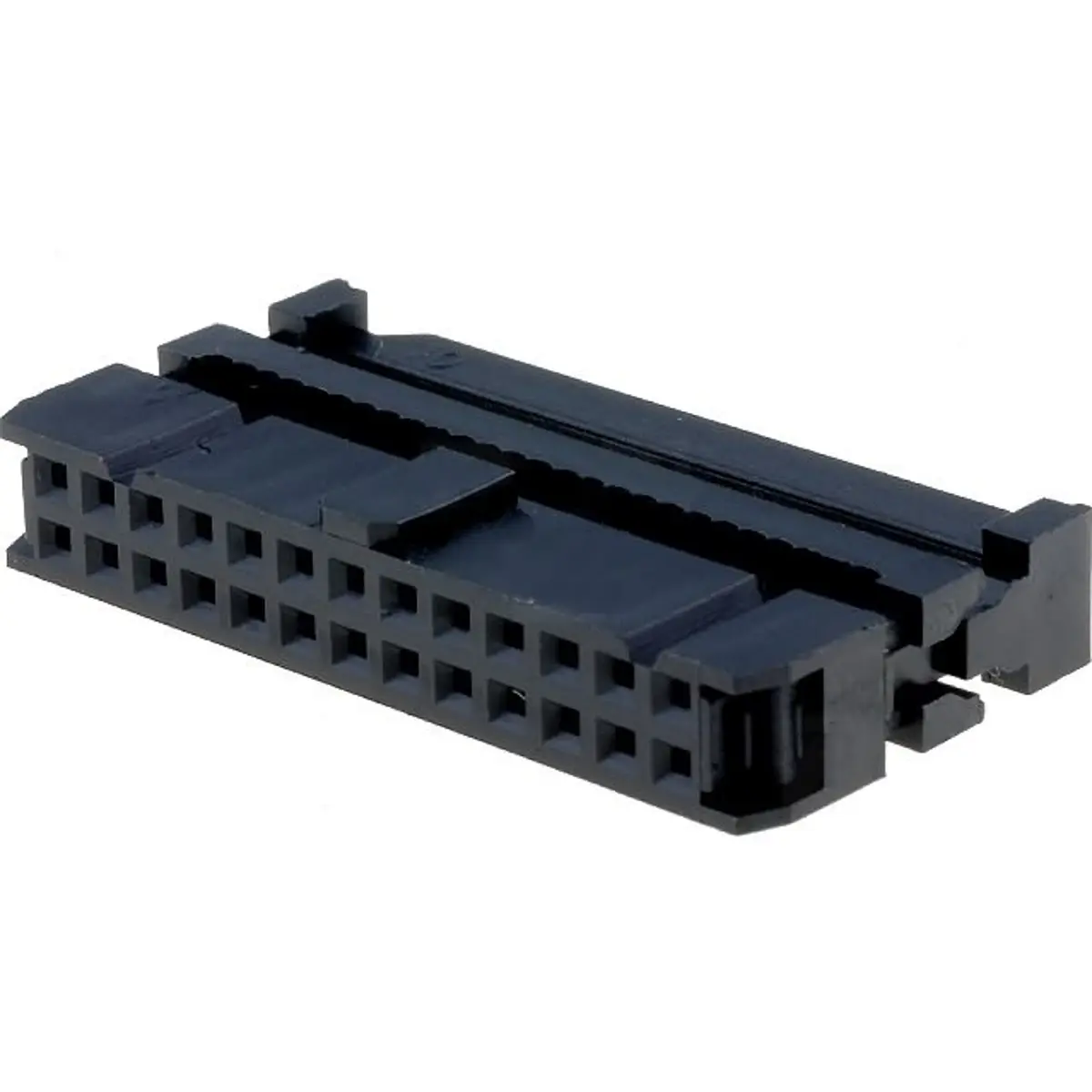 Conector IDC fêmea para ribbon cable de 1,27 mm, com 26 pinos em disposição 2x13. Possui passo entre pinos de 2,54 mm e distância entre contactos do ribbon de 1,27 mm, adequado a ligações de cablagem em prototipagem eletrónica, microcontroladores e placas de circuito. Compatível com cabos de 1,27 mm e conectores IDC padrão, oferecendo montagem simples, encaixe estável e fiabilidade em ligações de várias vias. Ideal para prototipação, automação e projetos que exigem ligações precisas e manejabilidade.