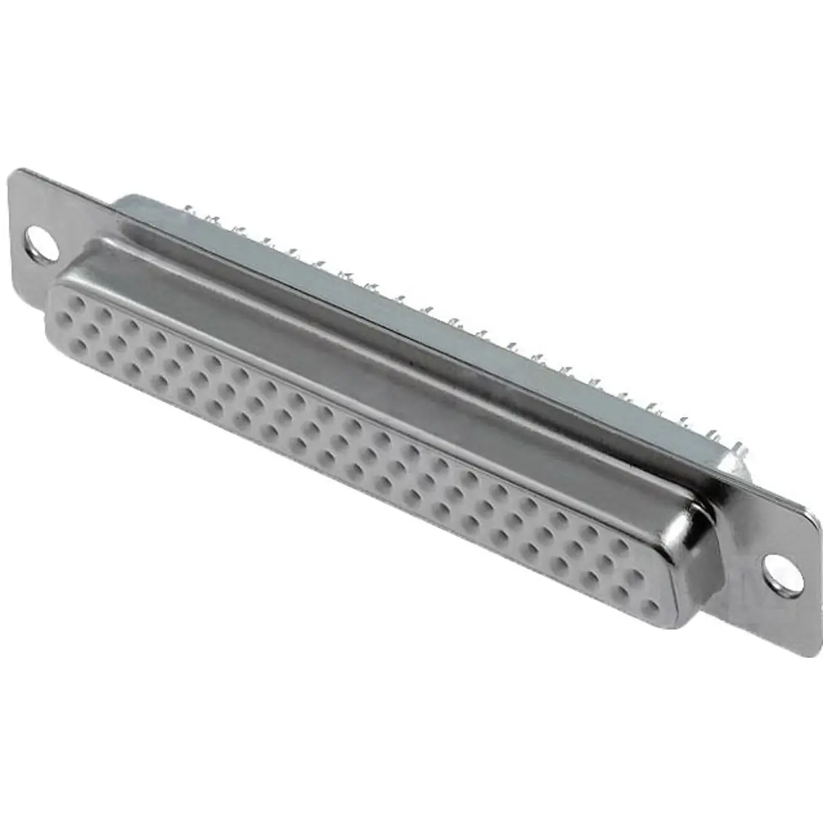 Conector HD D-Sub fêmea de 62 pinos, para soldar em cabo, com faixa de temperatura de operação entre -55ºC e 105ºC. Ideal para ligações que exigem conectividade robusta e fiabilidade em cabos, oferecendo encaixe estável e resistência térmica para aplicações elétricas que requerem precisão de pinos e manutenção de sinal.