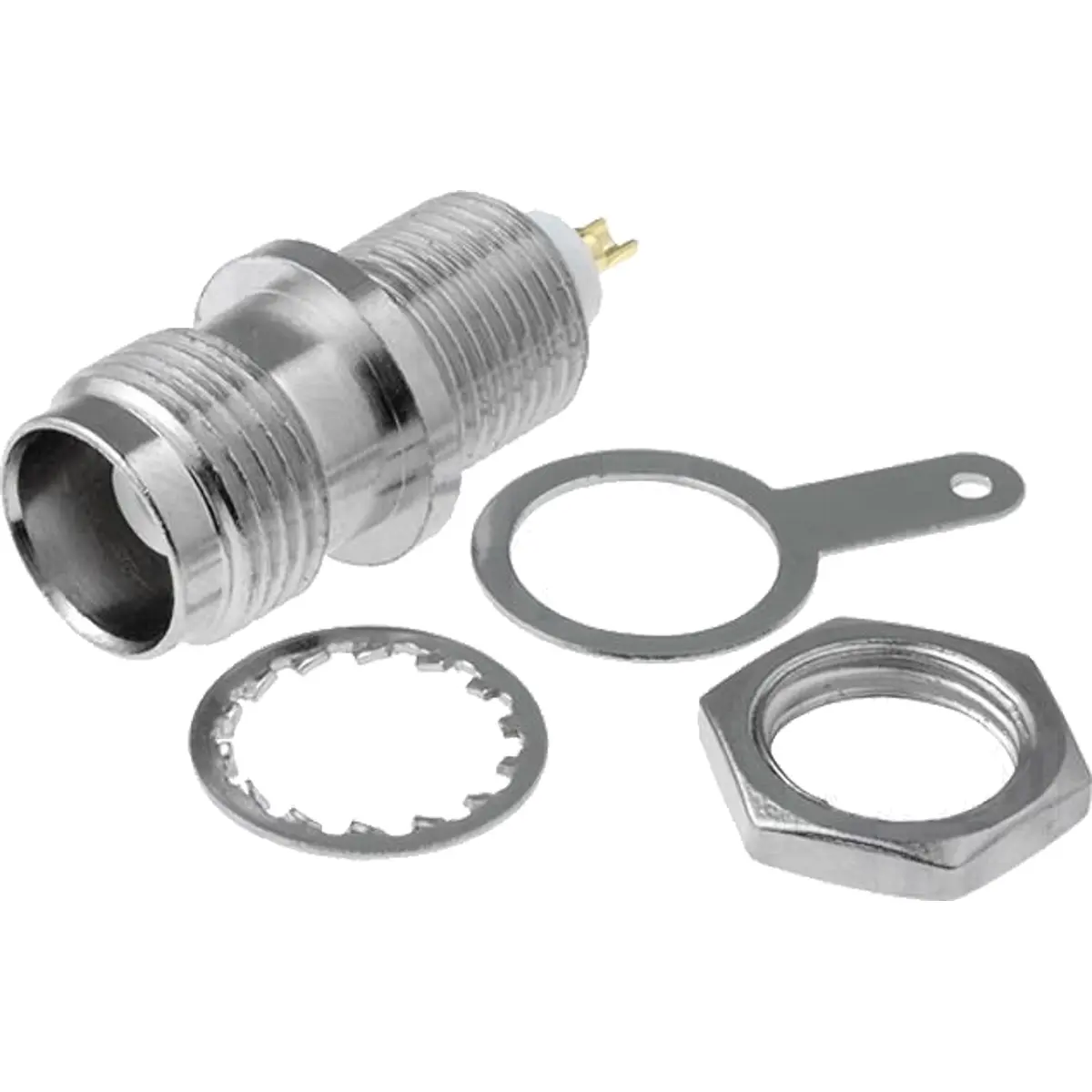 Ficha TNC de soldar fêmea para painel