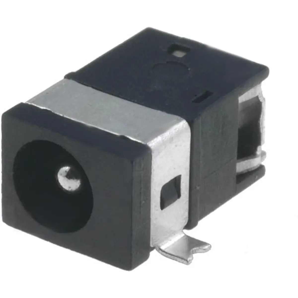 Ficha DC para PCB SMT com conector de alimentação DC macho MINI, dimensão 3,5/1,3 mm, tensão nominal 12V DC, corrente nominal 1A. Montagem SMT com orientação horizontal, adequada para ligações de alimentação em PCBs compactas.