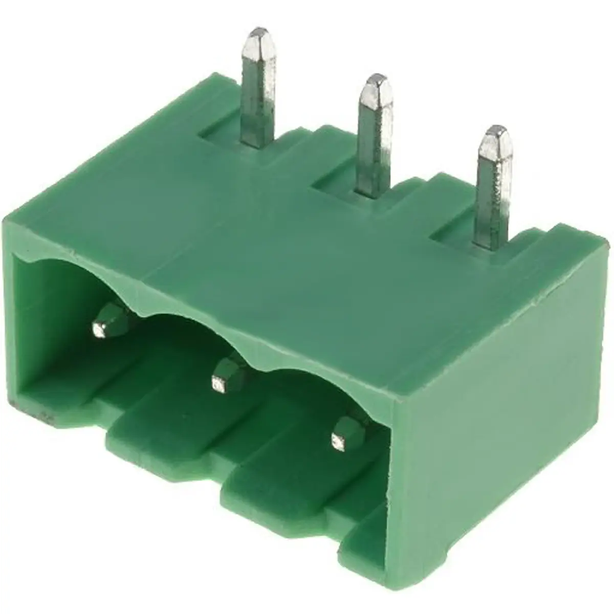 Bloco de 3 terminais para soldar em PCB angulado macho RM5.08mm