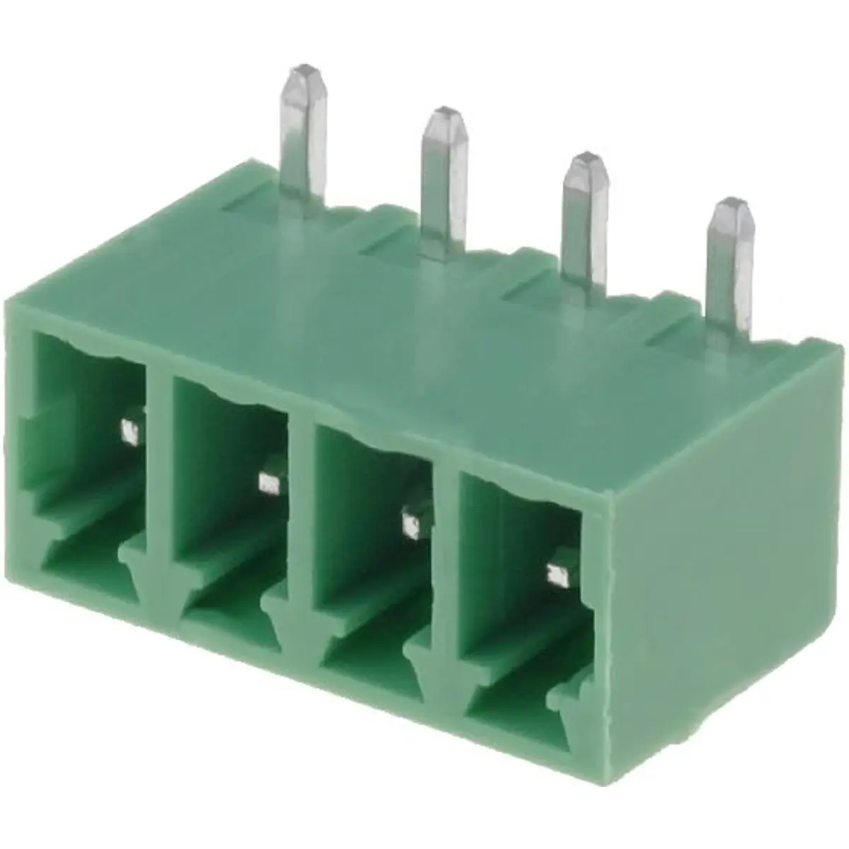 Bloco de 4 terminais para soldar em PCB angulado macho RM3.81mm