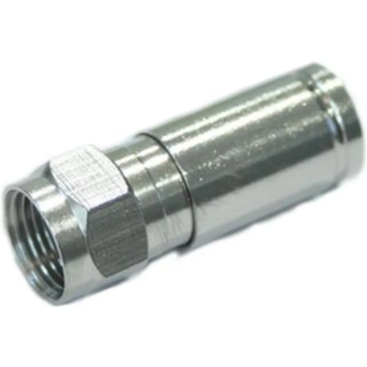 Conector F macho para cabo coaxial RG6 com fixação por compressão e impedância de 75Ω. Compatível com cabos RG6 de Ø 6,7 a 6,9 mm e com as séries CC96, CC128, CC112 e CC3S, abrangendo frequências de 5 a 2400 MHz. Palavras-chave: fichaF, macho, compressão, 5-2400MHz, 75Ω, RG6, 6,7-6,9mm