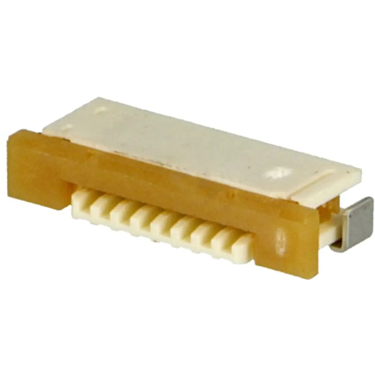 Conector FFC/FPC de 1 mm com orientação horizontal, 8 pinos e montagem SMT. Suporta até 50 V e 500 mA, com contactos estanhados. Ideal para ligações de cabos flat (flat-cable) em PCB, assegurando montagem superficial e fiabilidade elétrica num perfil reduzido.