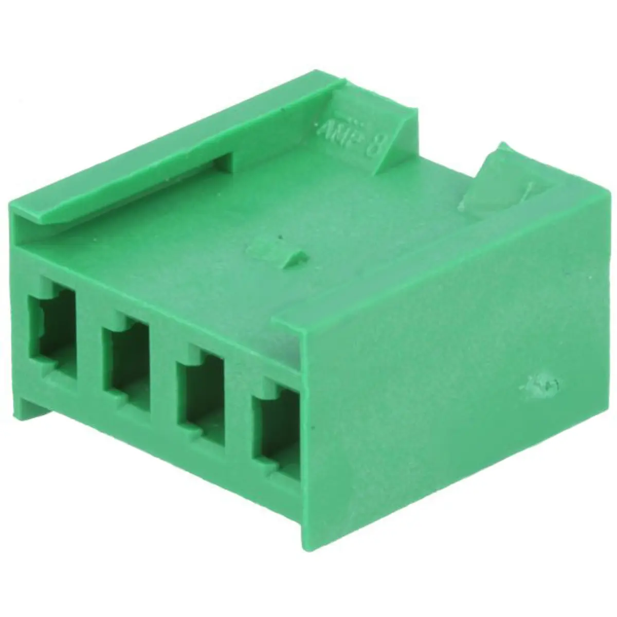 Conector fêmea wire-board de 4 pinos com passo de 3,96 mm e configuração 1x4, para montagem em cabo. Integra a série AMPMODU MOD I e não inclui contactos, oferecendo uma solução de conectividade para ligações entre cabos e componentes. Adequado para aplicações que requerem uma configuração compacta, com montagem segura por cabo e compatível com o conector AMPMODU MOD I.