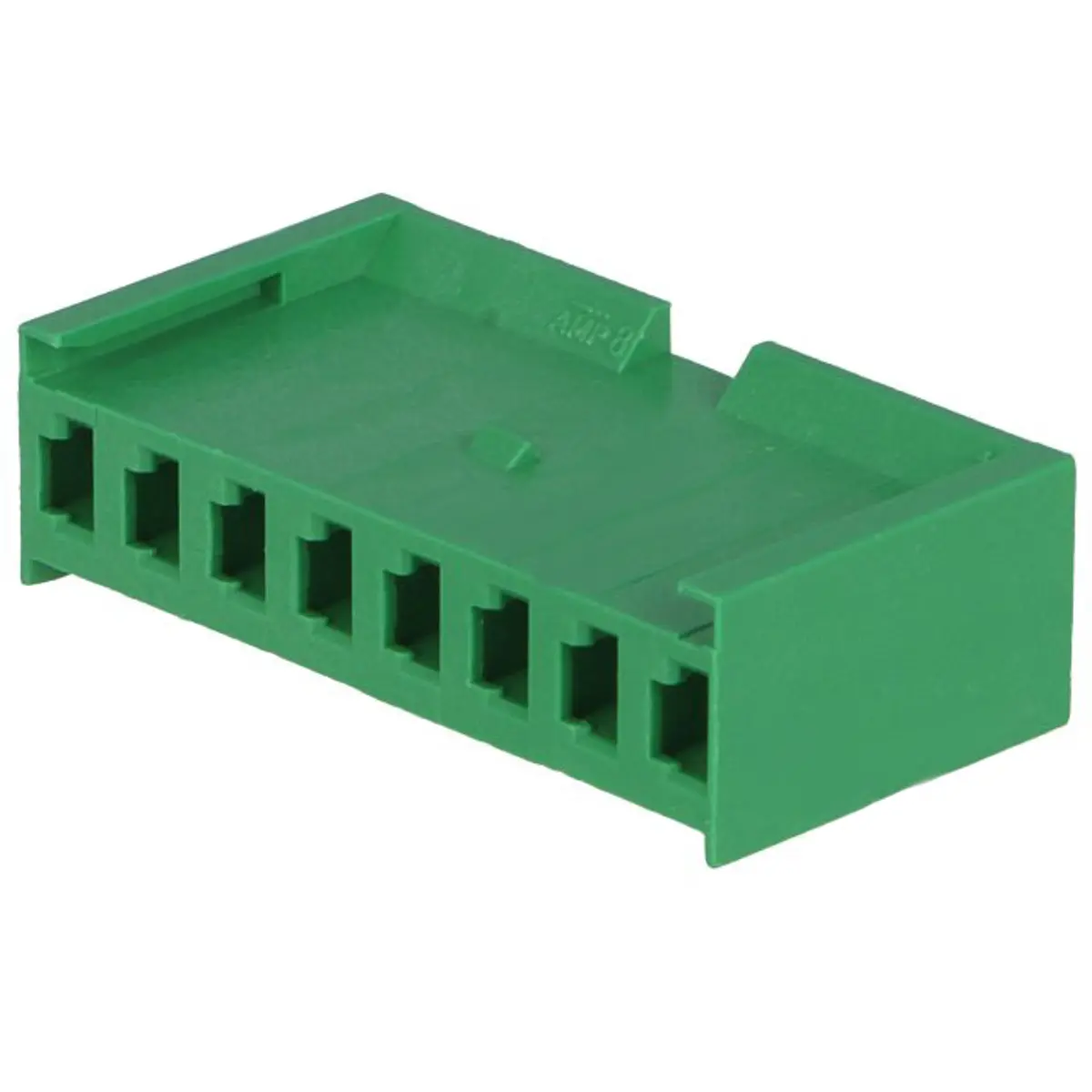 Conector do tipo wire-board fêmea com 8 pinos, distância entre pinos de 3,96 mm e montagem para cabo. Pertence à série AMPMODU MOD I, com configuração 1x8 e sem contactos. Ideal para ligações de sinal entre cabos e placas de circuito, oferecendo montagem simples e fiável sem contactos.
