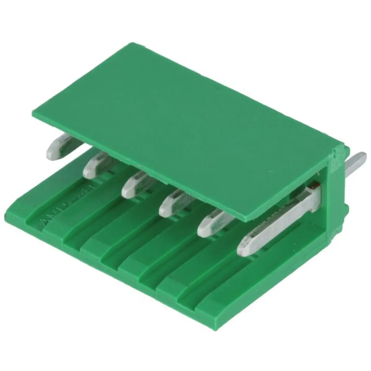 Conector macho wire-board de 6 pinos com pitch de 3,96 mm e montagem THT, da série AMPMODU MOD I, configuração 1x6. Ideal para ligações em PCB com pinos padronizados, oferecendo fiabilidade, montagem simples e compatibilidade com cablagens.