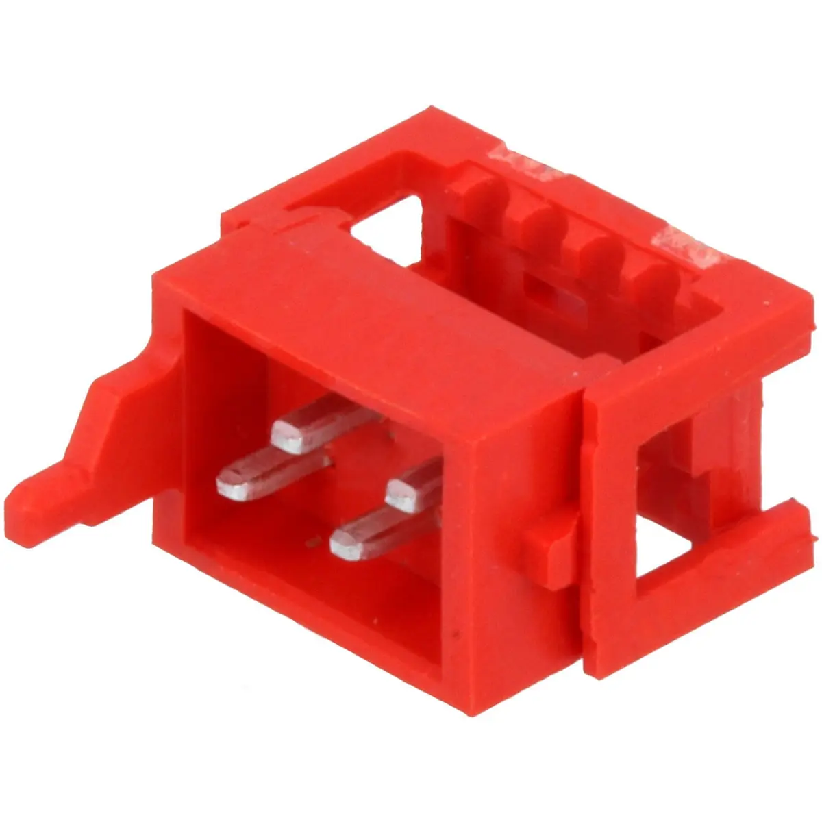 Conector macho Micro-Match com montagem IDC para flat-cable de 1,27 mm. Possui 4 pinos em configuração 2x2 e suporta até 1,5 A. Dimensões: A 8,6 mm, B 5,4 mm e C 3,81 mm.