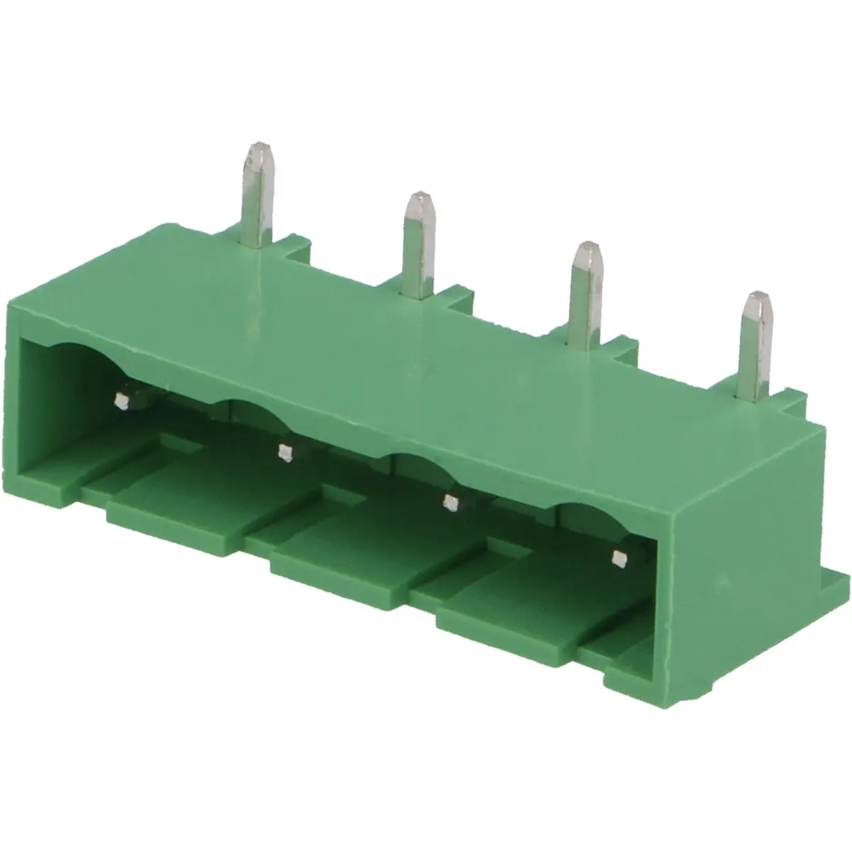 Bloco de terminais com encaixe macho, pitch de 7,5 mm e orientação angular, com quatro vias. Suporta 20 A e 400 V, montado através de orifícios em placa (THT). Ideal para ligações seguras em painéis e circuitos elétricos, oferecendo fiabilidade, fácil montagem e manutenção. Compatível com fiação de cablagem em ambientes industriais.