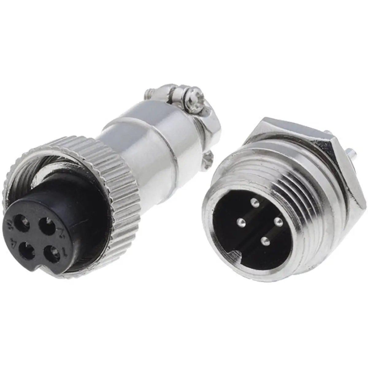 Conjunto de fichas de microfone MINI de 4 pinos, com macho para painel e fêmea para cabo com parafusos. Constitui uma solução compacta para ligações de áudio, usando conectores de microfone MINI em formato de tomada, com montagem elétrica por solda e montagem mecânica torcidos. Ideal para painéis e cabos que requerem conectores de 4 pinos, oferece fiabilidade em ligação entre componentes, facilidade de montagem e compatibilidade com cablagens de áudio profissionais.