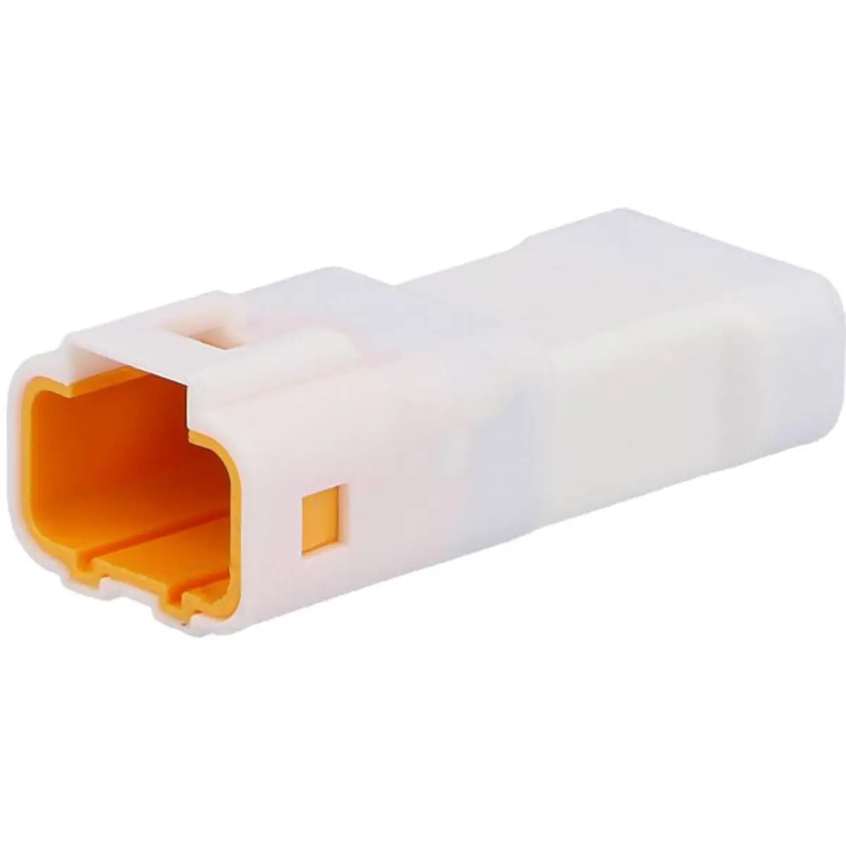 Conector do tipo ficha para ligação entre fios e PCB com configuração macho, sem contactos, apresentando 4 pinos a 2 mm de distância. Suporta tensões até 100 V e correntes até 3 A, oferecendo proteção IPX7. Adequado para aplicações que exigem uma ligação segura, resistente à água e de montagem rápida.
