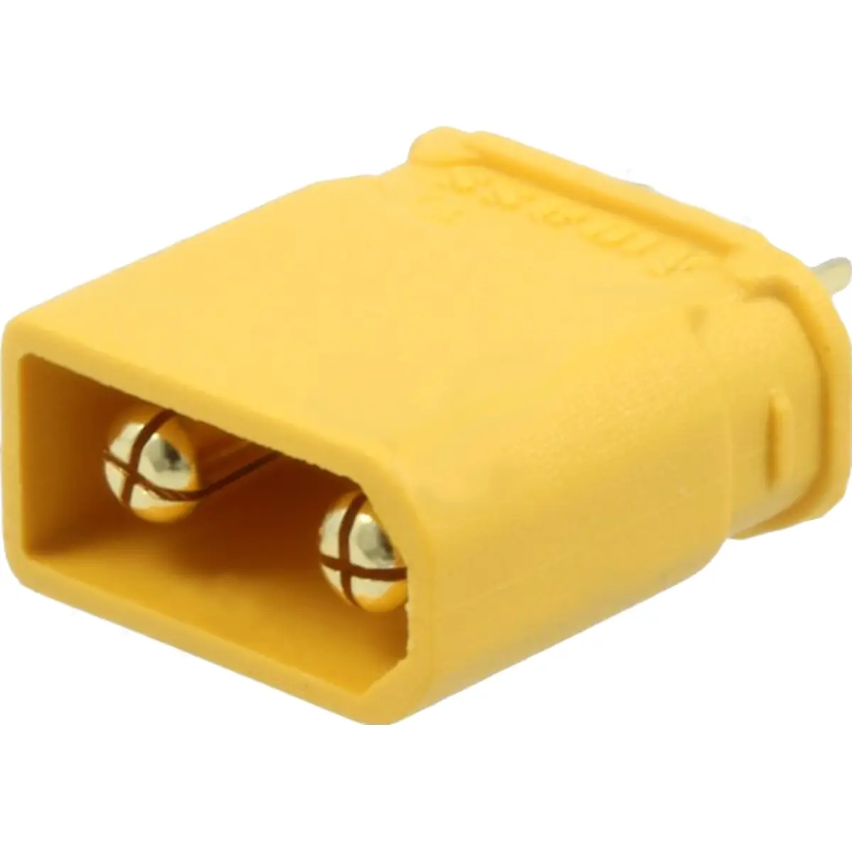 Conector ficha macho DC da série XT30, desenhado para cabos de 18AWG. Montagem mecânica com cabo e montagem eléctrica por solda, contacto em latão com revestimento gold flash. Permite alimentação DC de até 500V e 15A, com isolamento UL94V-0. Temperatura de funcionamento de -20 a 120°C, corpo em poliamida de cor amarela e tamanho compacto, adequado para aplicações que exigem fiabilidade e contactos duráveis em espaços confinados.