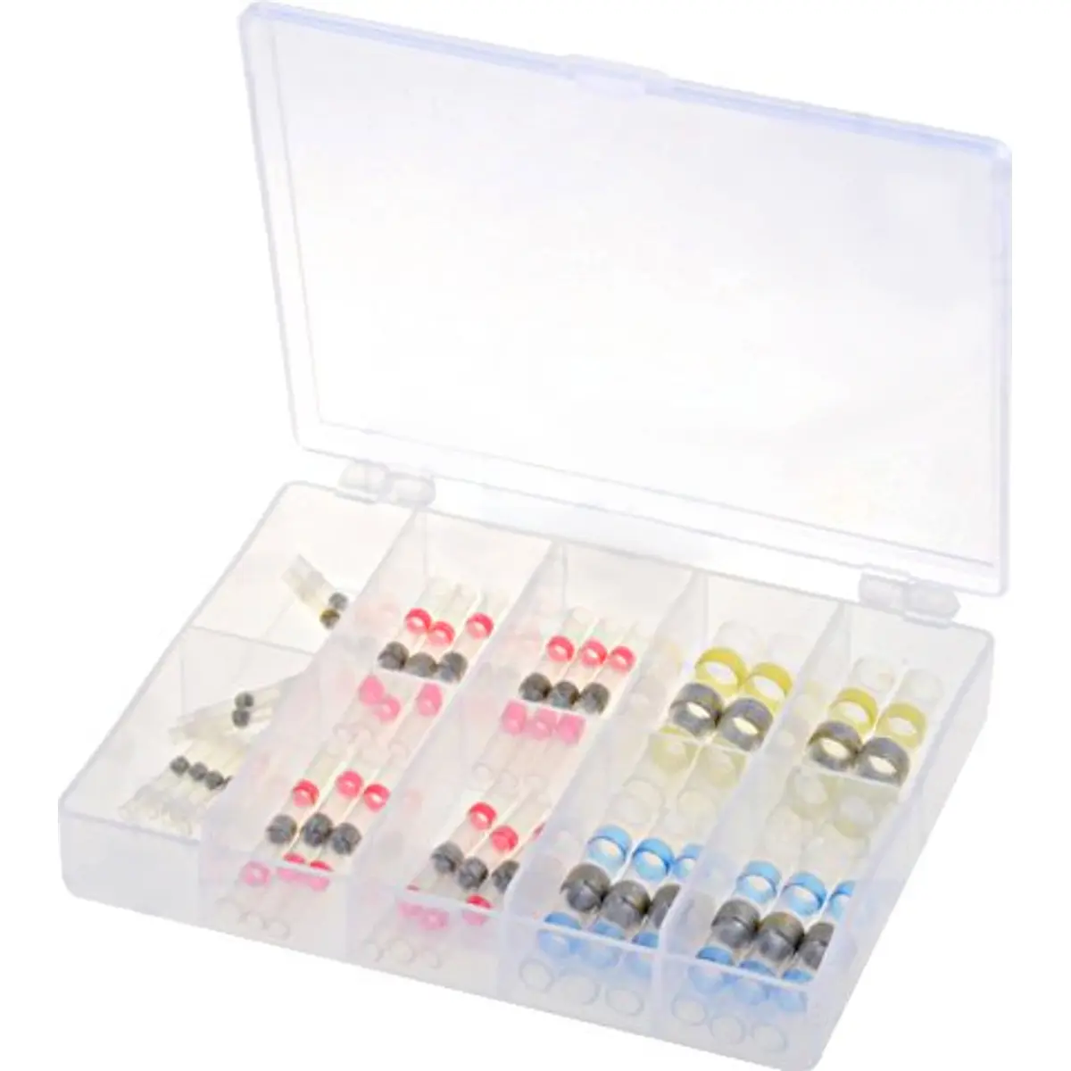 Com estes ligadores de auto soldadura térmica nunca foi tão simples a união de fios. Basta descarná-los e introduzir as pontas até ao centro. De seguida e com calor a manga térmica retrai, e o anel de estanho de baixa temperatura derrete soldando permanentemente as 2 pontas. Perto das extremidades existem os anéis adesivos retrateis que impede que humidades entrem para dentro da união.
