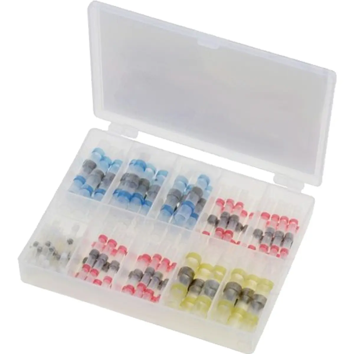 Com estes ligadores de auto soldadura térmica nunca foi tão simples a união de fios. Basta descarná-los e introduzir as pontas até ao centro. De seguida e com calor a manga térmica retrai, e o anel de estanho de baixa temperatura derrete soldando permanentemente as 2 pontas. Perto das extremidades existem os anéis adesivos retrateis que impede que humidades entrem para dentro da união.