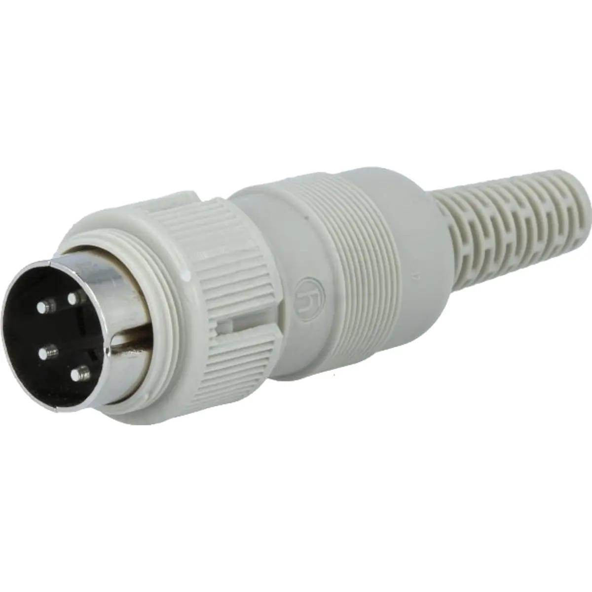Conector DIN de 4 pinos, macho com rosca para cabo e configuração de 216º. Ideal para ligações elétricas seguras em cablagem industrial, automação e equipamentos que utilizam padrões DIN. A ficha suporta montagem estável, facilita a identificação de componentes e oferece boa resistência a vibrações. Compatível com cabos apropriados, facilita ligações rápidas e confiáveis em painéis, armários e sistemas de distribuição elétrica.