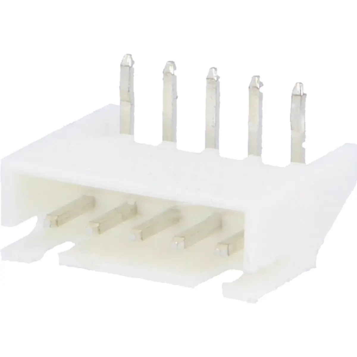 Conector macho de 5 pinos com passo de 2,5 mm, ângulo de 90°, montagem em THT, tensão nominal de 250 V e corrente máxima de 3 A. Resistência de contacto máx. 10 mΩ, inflamabilidade UL94V-0, corpo em poliamida, temperatura de operação entre -25 °C e 85 °C, configuração de pinos 1x5. Adequado para ligações seguras em PCB.