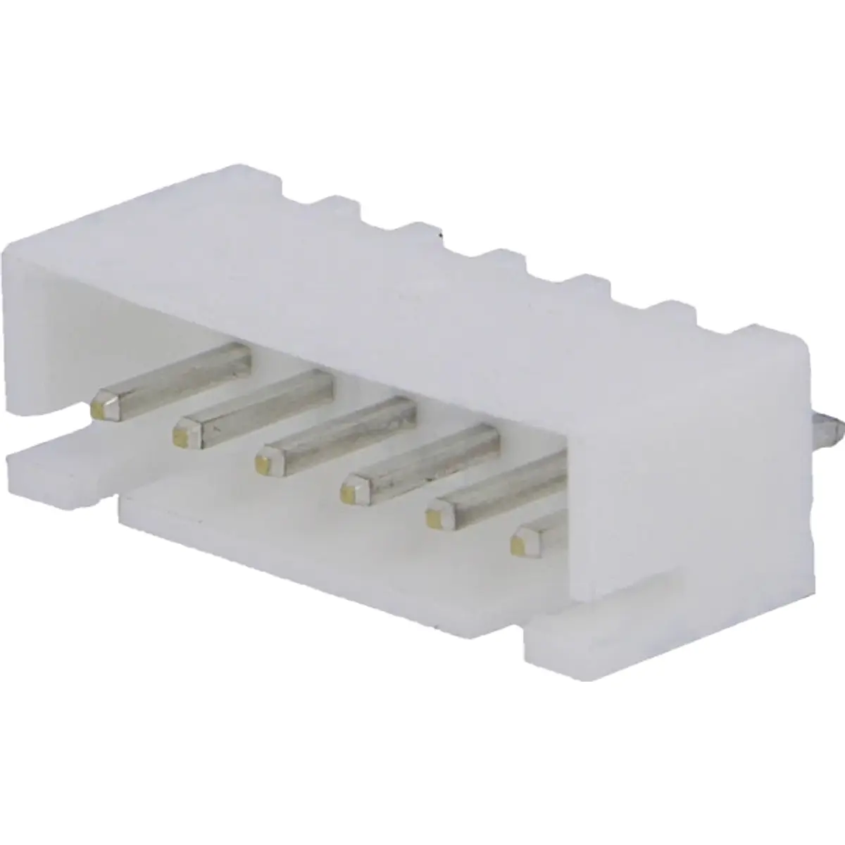 Conector de 6 pinos macho com pitch de 2,5 mm para montagem em PCB (fio-placa). Faz parte da série XH, com montagem THT, tensão nominal de 250 V e corrente de 3 A. Adequado para ligações fio-placa em eletrónica, funcionando entre -25 °C e 85 °C, com orientação simples para montagem horizontal ou vertical. Ideal para integrações industriais e de consumo que exigem fiabilidade, facilidade de montagem e compatibilidade com cabos multiconector.