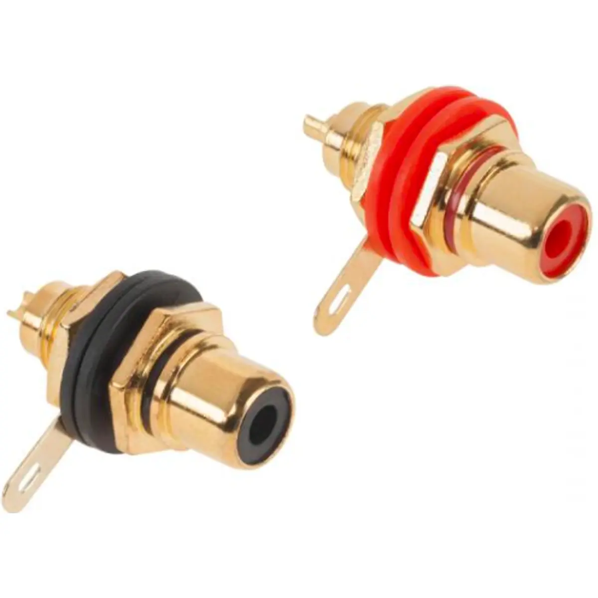 Conjunto de 2 fichas RCA fêmea de painel douradas vermelha + preta