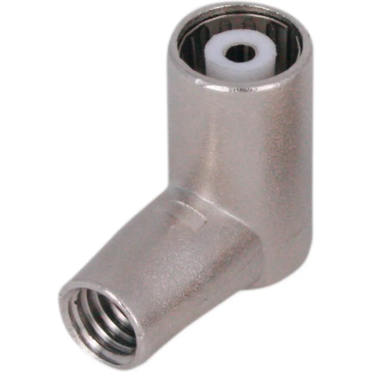 Ficha IEC fêmea, de 75Ohm, para cabo RG6, com frequência de 5-1000MHz, blindagem Classe A++ de 105dB e diâmetro de cabo entre 6.6 e 6.9 mm; ideal para ligações rápidas em sistemas de distribuição de sinal de televisão e satélite.