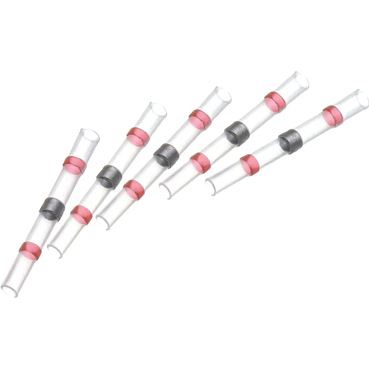Com estes ligadores de auto soldadura térmica nunca foi tão simples a união de fios. Basta descarná-los e introduzir as pontas até ao centro. De seguida e com calor a manga térmica retrai, e o anel de estanho de baixa temperatura derrete soldando permanentemente as 2 pontas. Perto das extremidades existem os anéis adesivos retrateis que impede que humidades entrem para dentro da união.