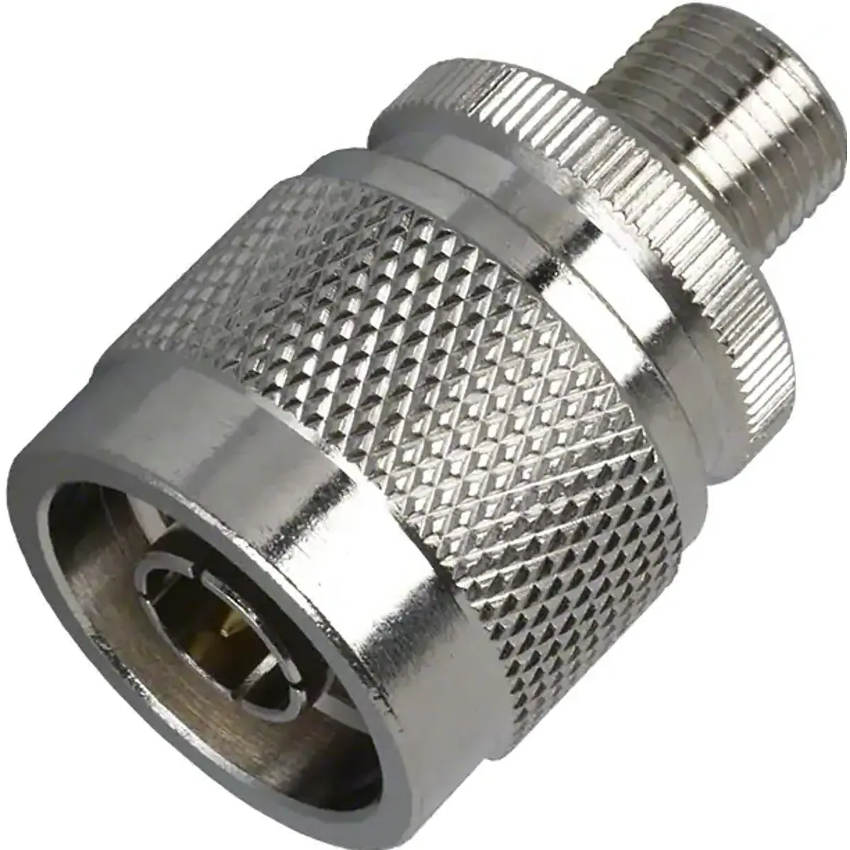 Este adaptador RF em latão, com acabamento em níquel, permite a ligação de conectores N macho a F fêmea, mantendo 50 ohm de impedância e suportando frequências até 2 GHz. O contacto central em cobre garante boa condução e fiabilidade. Ideal para montagem de redes RF, teste de cabos e equipamento de comunicação. Pequeno, robusto, com resistência à corrosão. Compatível com cablagem coaxial de várias classes.