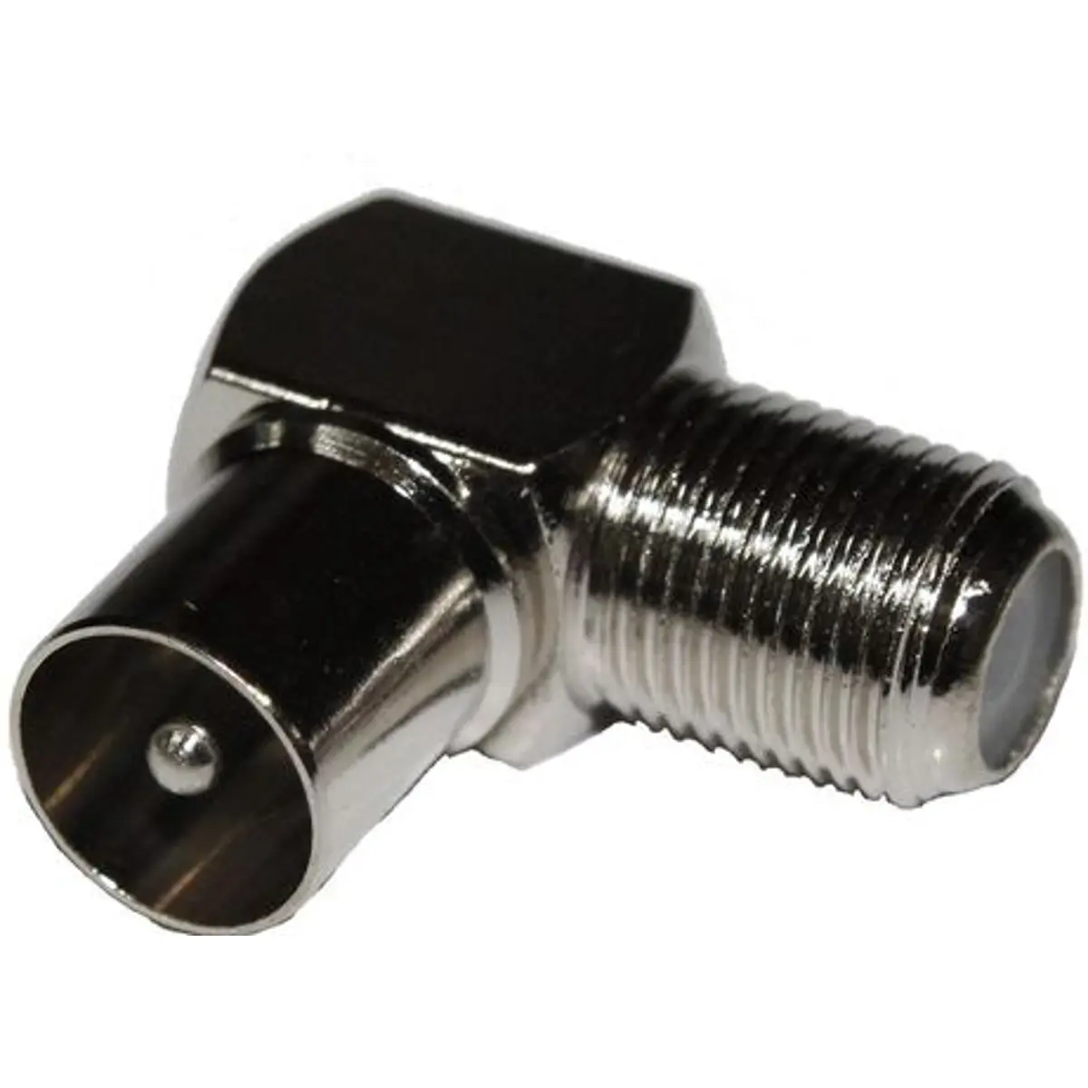 Adaptador F-fêmea - TV(75Ω) - macho 90º