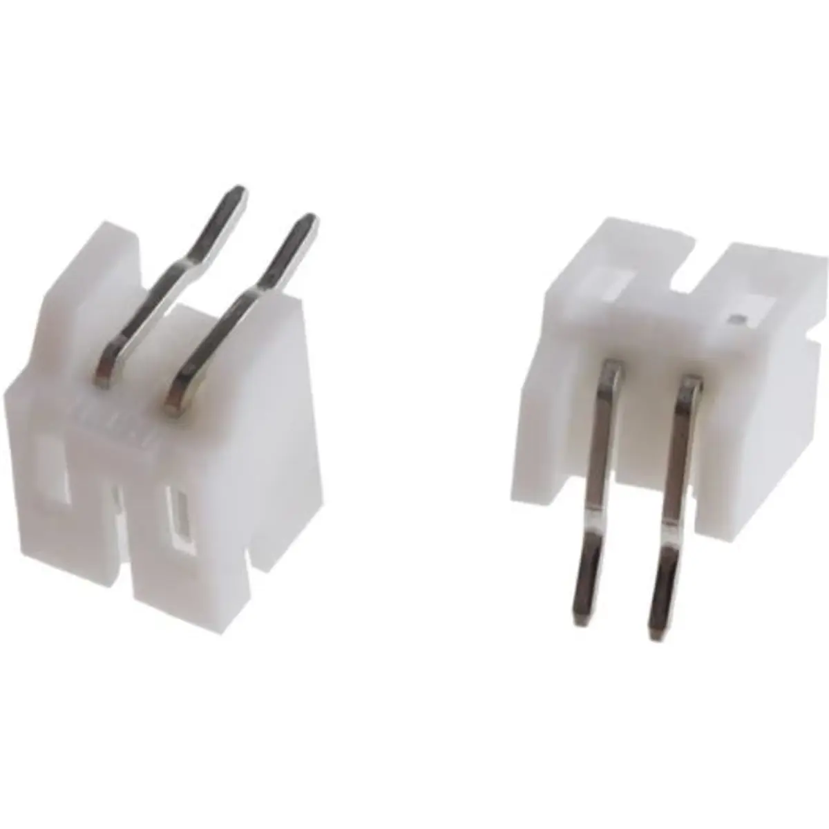 Conector de fio para placa com 2 pinos, passo de 2 mm, tipo macho, orientação a 90 graus. Série PH, montagem THT para PCB. Ideal para ligações fio-placa com tensão nominal de 100 V e corrente até 2 A. Compatível com montagem horizontal, oferece encaixe estável entre fio e placa, adequado para aplicações eletrónicas e de automação que exigem conectividade segura e compacta.