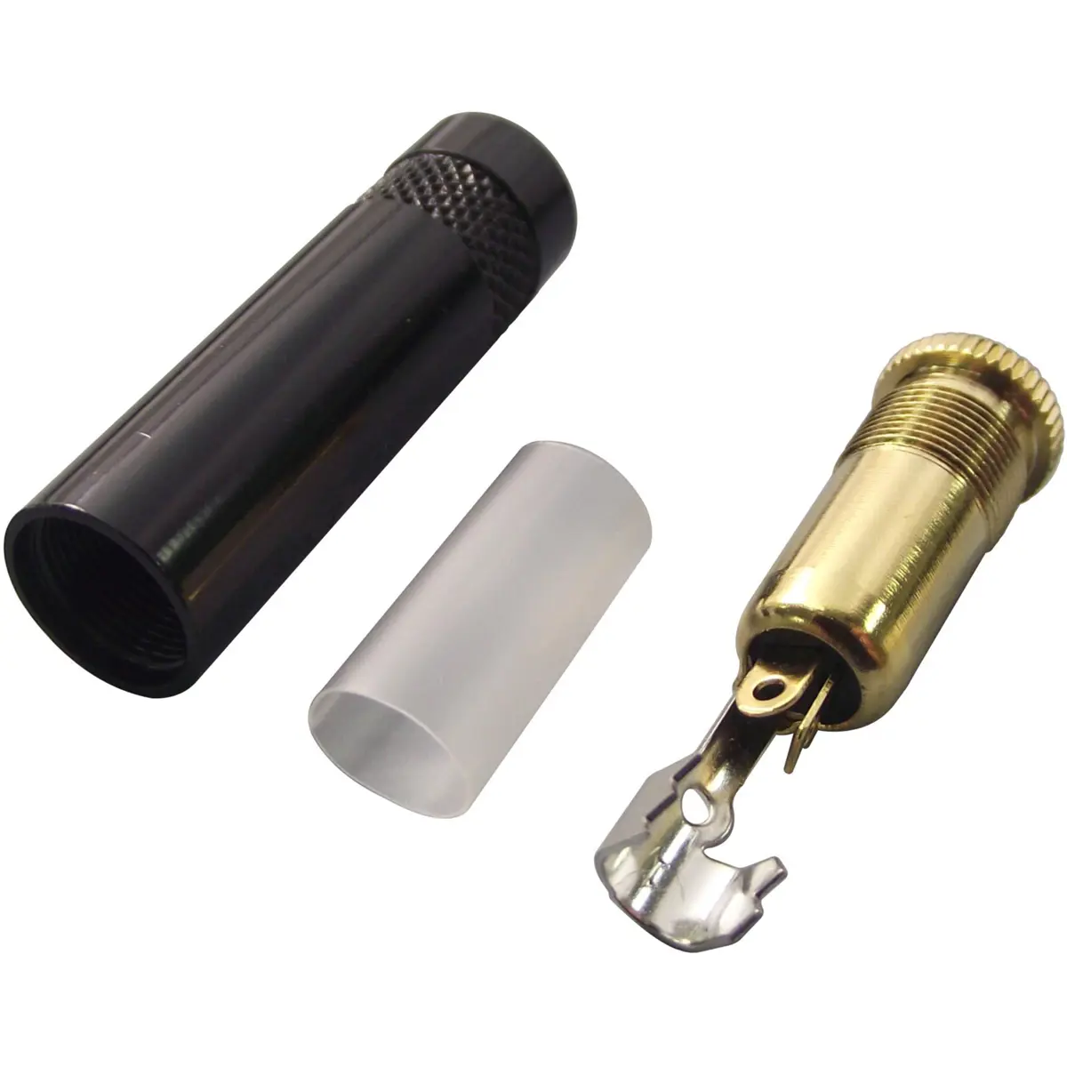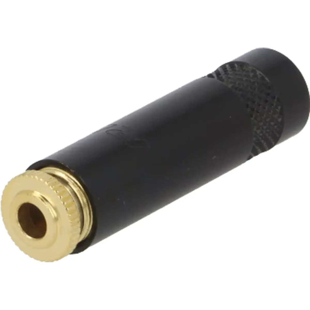 Rean (by Neutrik) NYS240 BG - Ficha Jack 3.5mm STEREO fêmea metálica p/ cabo - Preto