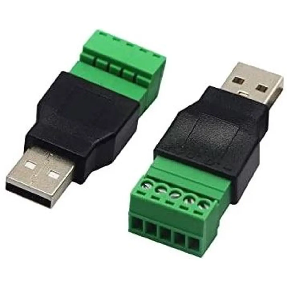 Ficha USB A macho com terminais de parafusos de 5 pinos oferece uma ligação eléctrica segura, compatível com tensões de 5VDC e correntes até 500mA. Este conector é concebido para funcionamento até 30°C (86°F), ideal para projetos de eletrónica que exigem conectores simples e fiáveis, com terminais de parafusos que asseguram uma fixação sólida. Adequado para montagem em painéis e ligações temporárias ou permanentes, facilita montagens rápidas sem necessidade de soldadura.