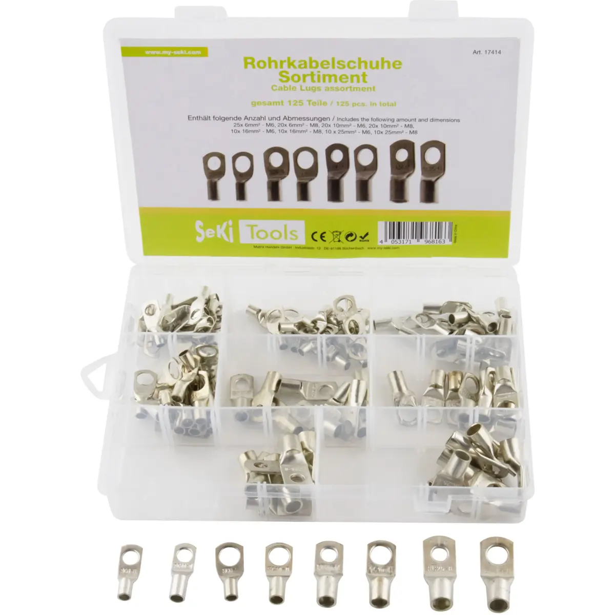 Sortido de 125 Terminais olhal não isolados 6-25mm²
