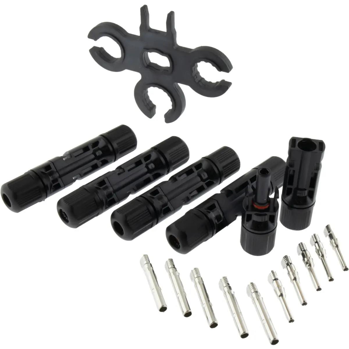 Conjunto de 10 fichas (5M + 5F) Solares MC4 1000V 30A 6mm² + chave de montagem