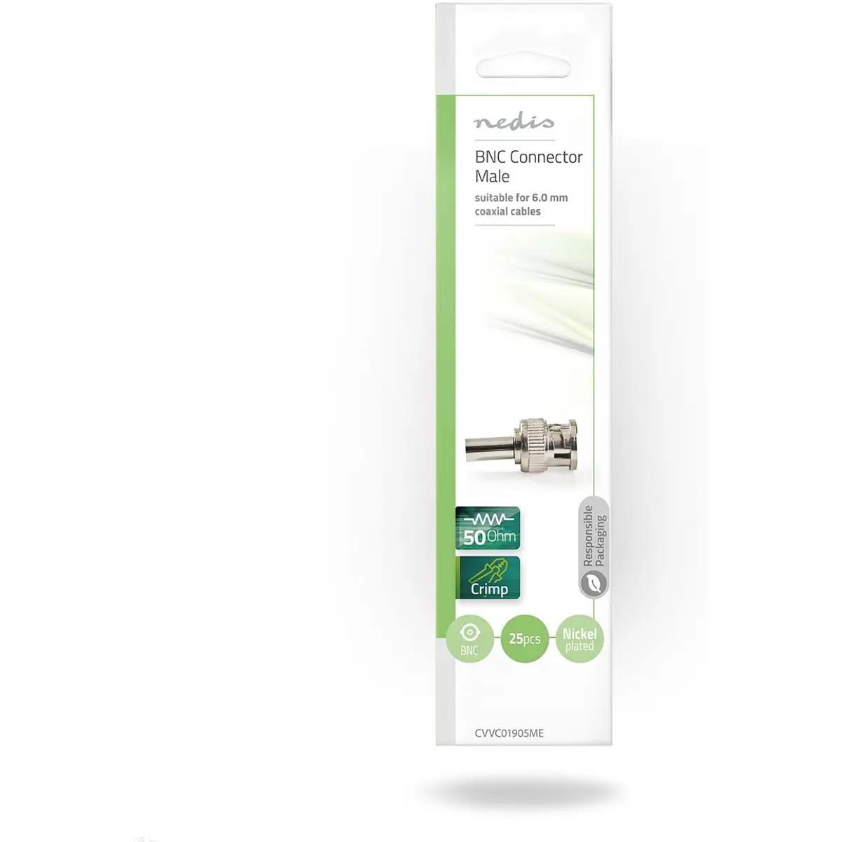 Nedis - Ficha BNC de cravar macho p/ cabo RG59U Ø6mm [25 unid.]