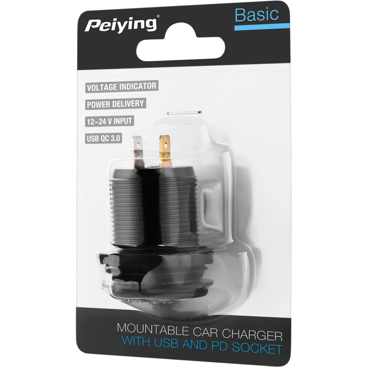 Peiying - Tomada de painel USB-C PD + USB-A QC3.0 48W c/ indicador de voltagem + interruptor (12-24V)