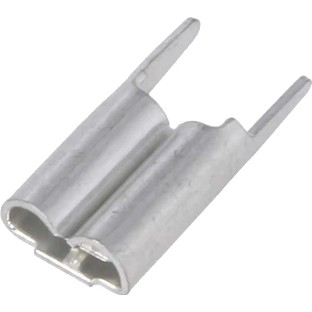 Terminal fêmea para PCB com contacto estanhado, concebido para ligações planas. Possui comprimento total de 12 mm, largura de 4,8 mm e grossor de 0,5 mm, fabricado em latão para melhor condutividade. A montagem é THT, compatível com raster de 5 mm, o que facilita a inserção em placas de circuito. Ideal para engenheiros e montadores que procuram conectores planos, fiáveis, estáveis e de instalação simples em painéis de precisão.