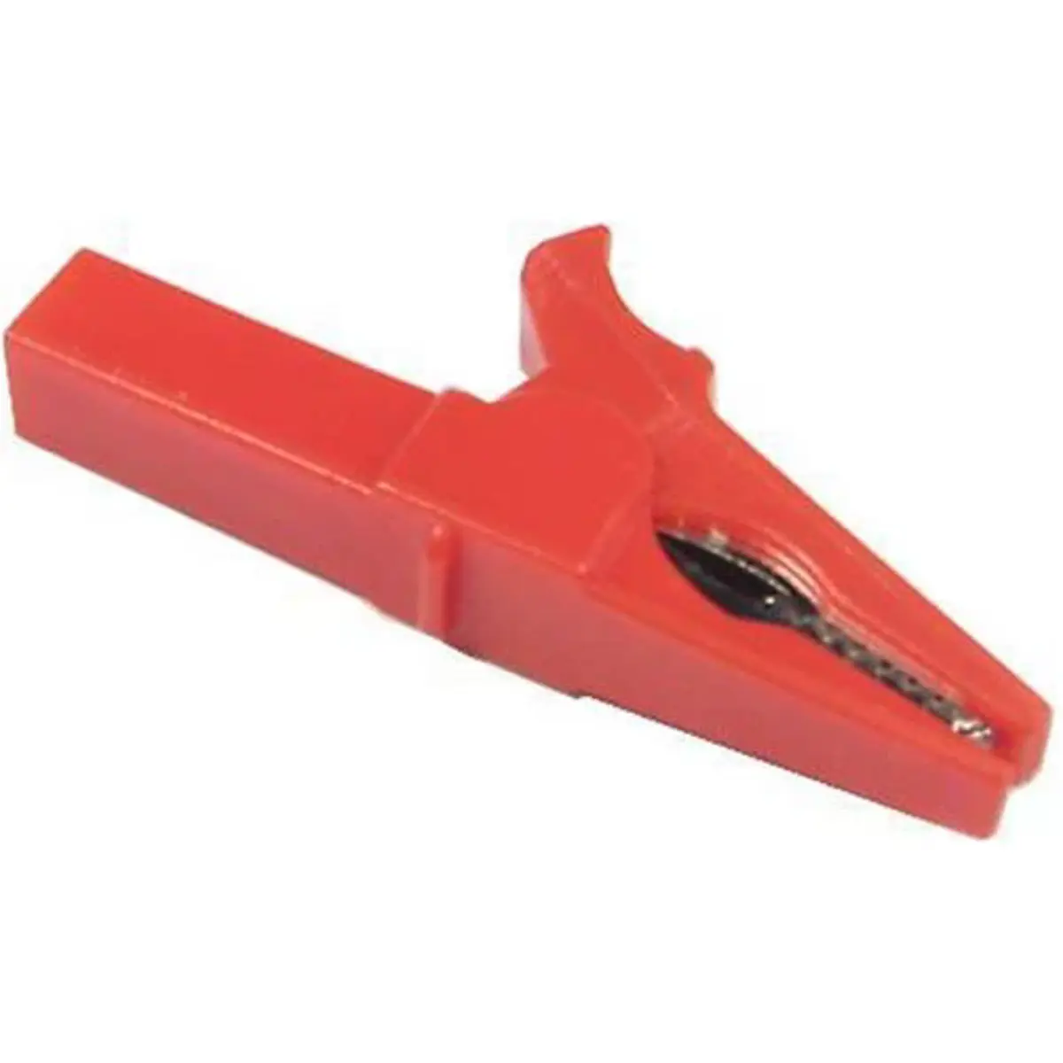 Crocodilo isolado vermelho com ligação banana Ø4 mm, ideal para ligações elétricas em testes e prototipagem. Suporta tensão até 600 V e corrente até 20 A, com comprimento total de 55 mm e mandíbula de 19 mm, facilitando ligações estáveis entre instrumentos e cabos de teste. Compatível com ligações banana Ø4 mm, oferecendo uma conexão adequada para trabalhos de eletrónica e ensaios.