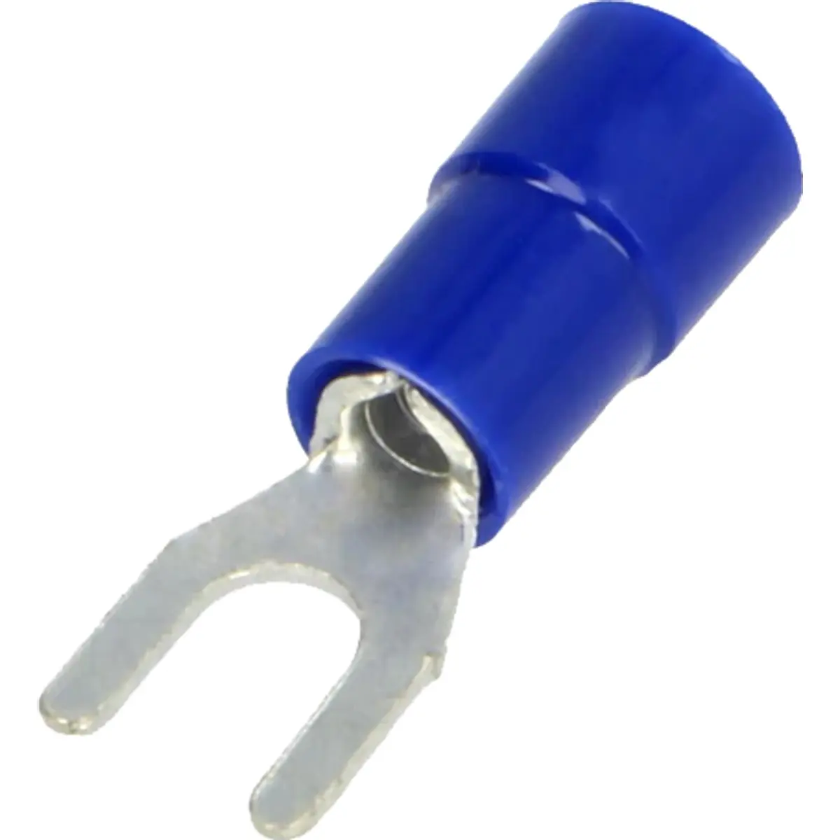 Terminal de forquilha azul compatível com fios de 1,5 a 2,5 mm², com abertura de 3,7 mm. Este componente é utilizado em ligações eléctricas onde é necessária uma fixação estável e uma identificação rápida pela cor. A tonalidade azul facilita distinguir a seção dos cabos na montagem e manutenção, contribuindo para uma organização clara da cablagem sem referenciar marcas.