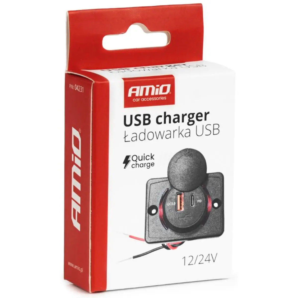 AMiO - Tomada de painel saliente 12/24V para USB-A + USB-C QC3.0 - Backlight vermelho