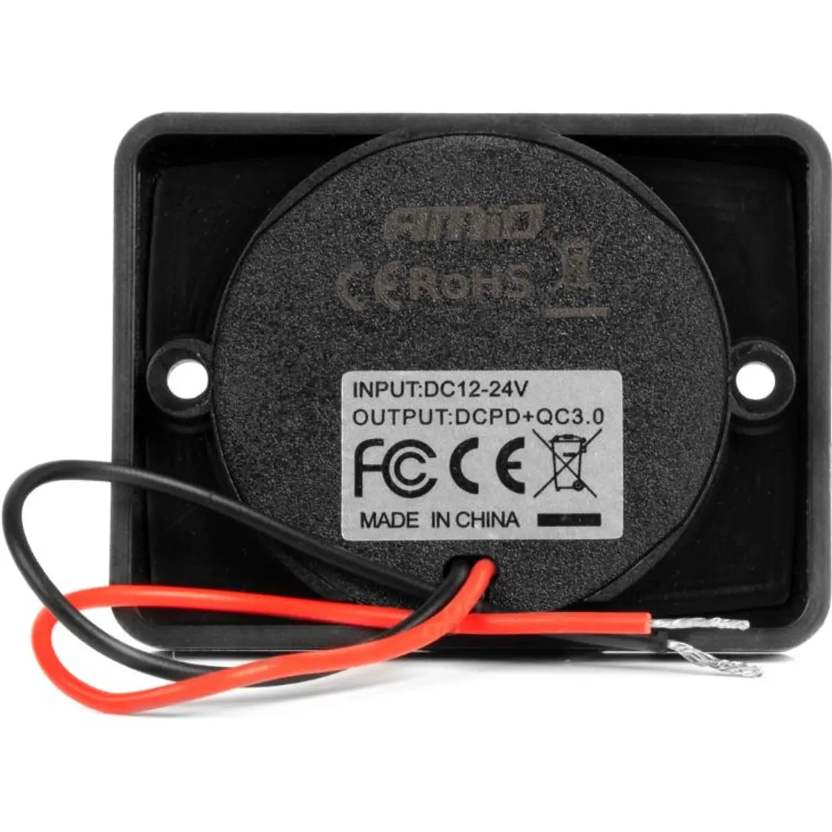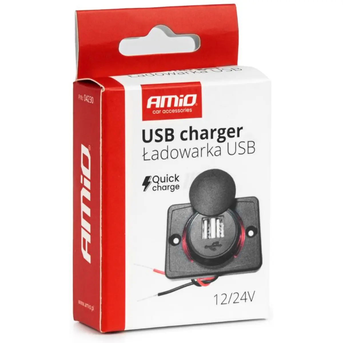 AMiO - Tomada de painel saliente 12/24V para 2x USB-A QC3.0 - Backlight vermelho