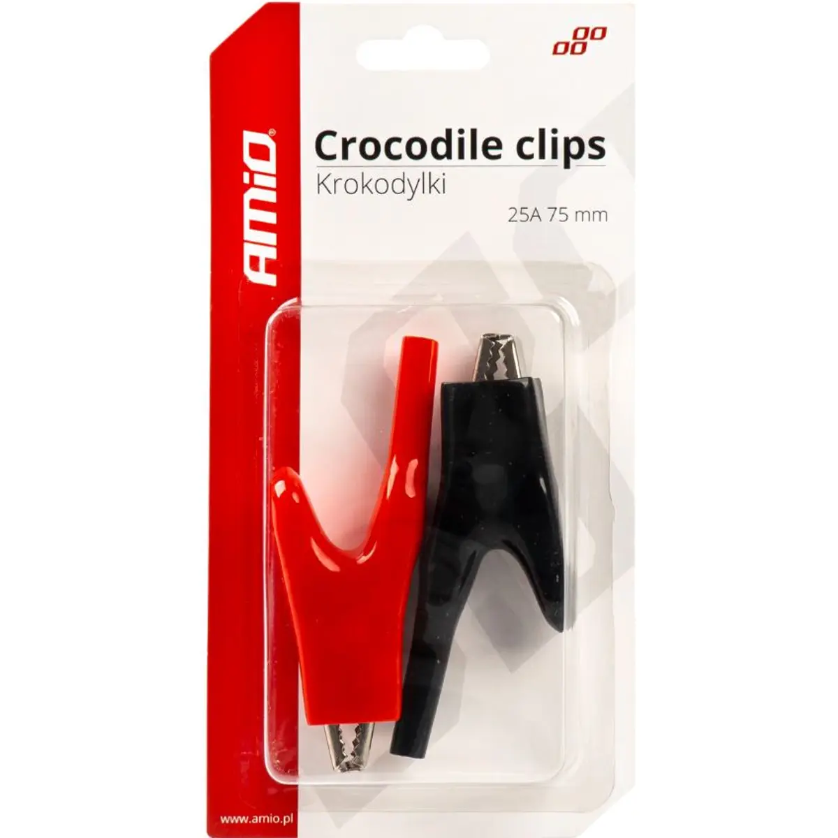 AMiO - Garras de Crocodilo isolados 25A (75mm) - Preto + Vermelho