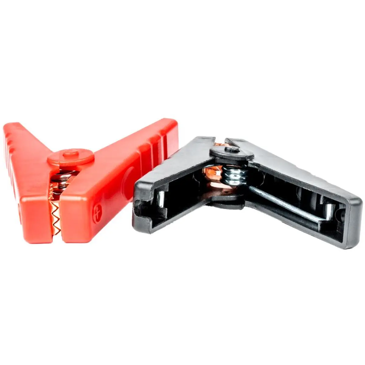 Garras de crocodilo isoladas de 95mm com corrente entre 200 e 400 A, em vermelho e preto. Proporcionam contacto estável e seguro em ligações elétricas, com isolamento eficaz. Abertura máxima de 25mm e comprimento de 95mm, oferecendo compatibilidade com várias ferramentas e componentes. Ideais para aplicações industriais que exigem robustez, durabilidade e desempenho elétrico confiável em fixação de cabos e terminais.