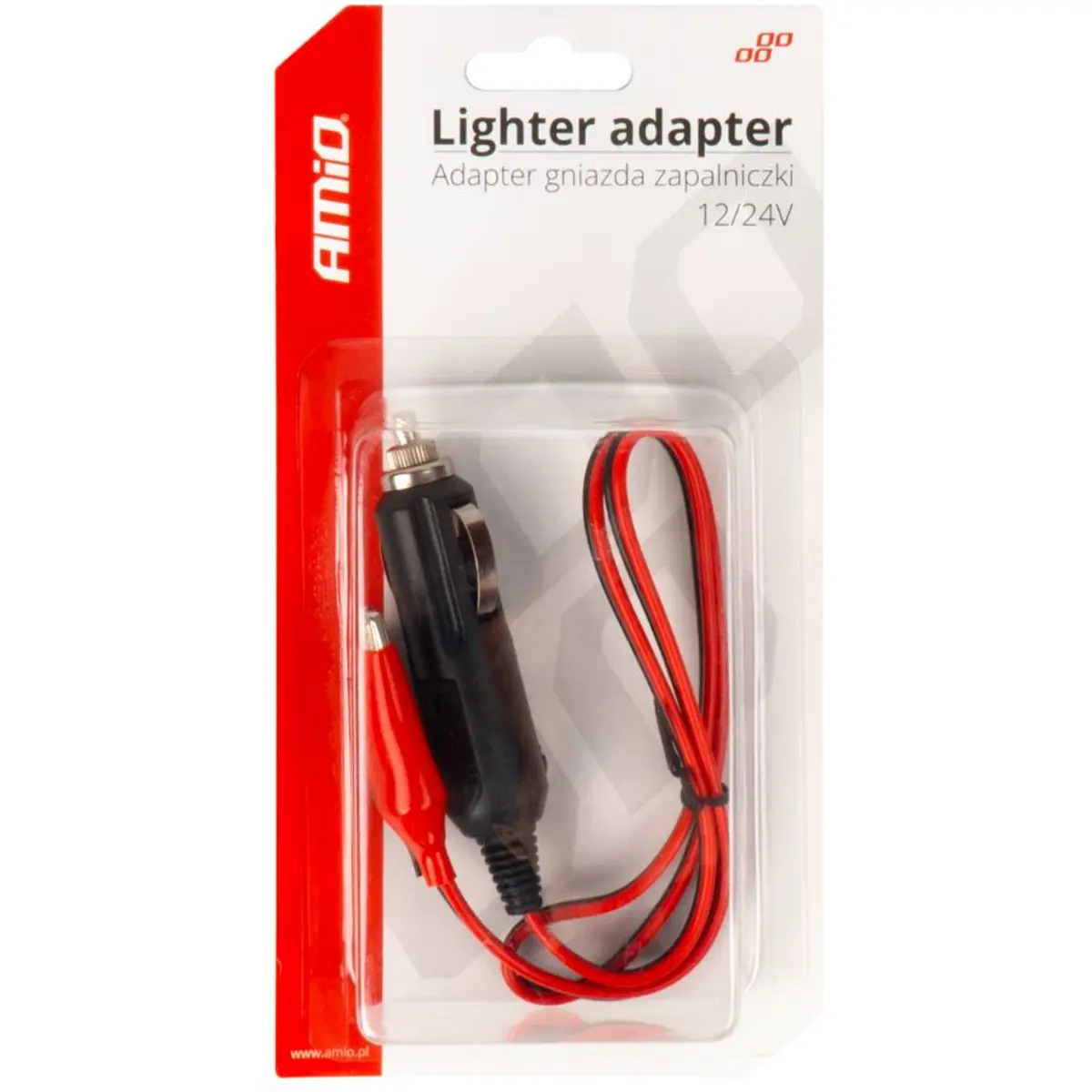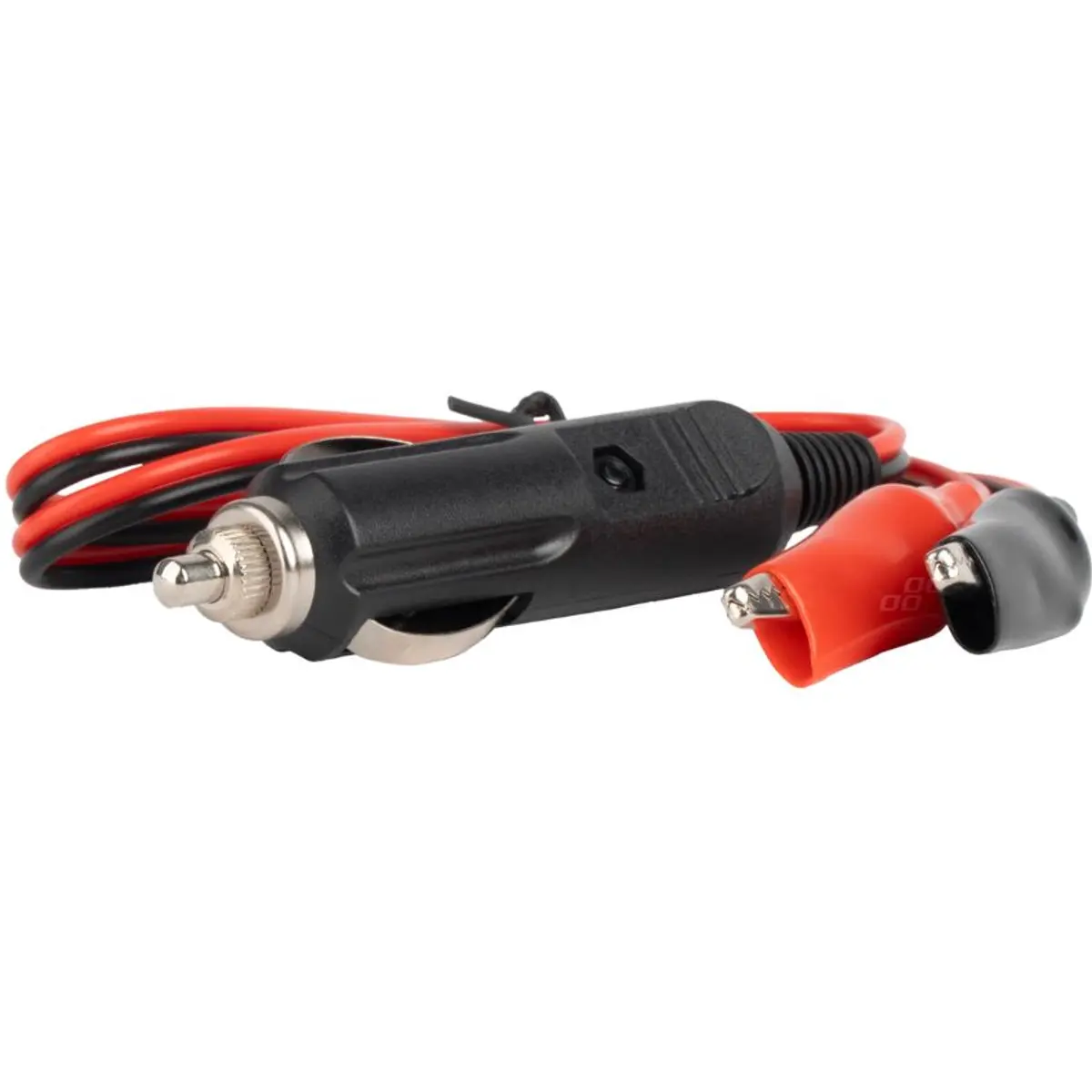Conector isqueiro macho com crocodilos para ligações elétricas, compatível com tensões de 12V ou 24V e capacidade de até 10A. Possui cabo de 60 cm e plugue com dimensões Ø30x58 mm, oferecendo design compacto e instalação simples. Ideal para ligações rápidas, seguras e fiáveis em aplicações automotivas, com acabamento de alta qualidade e boa resistência a ambientes exigentes.