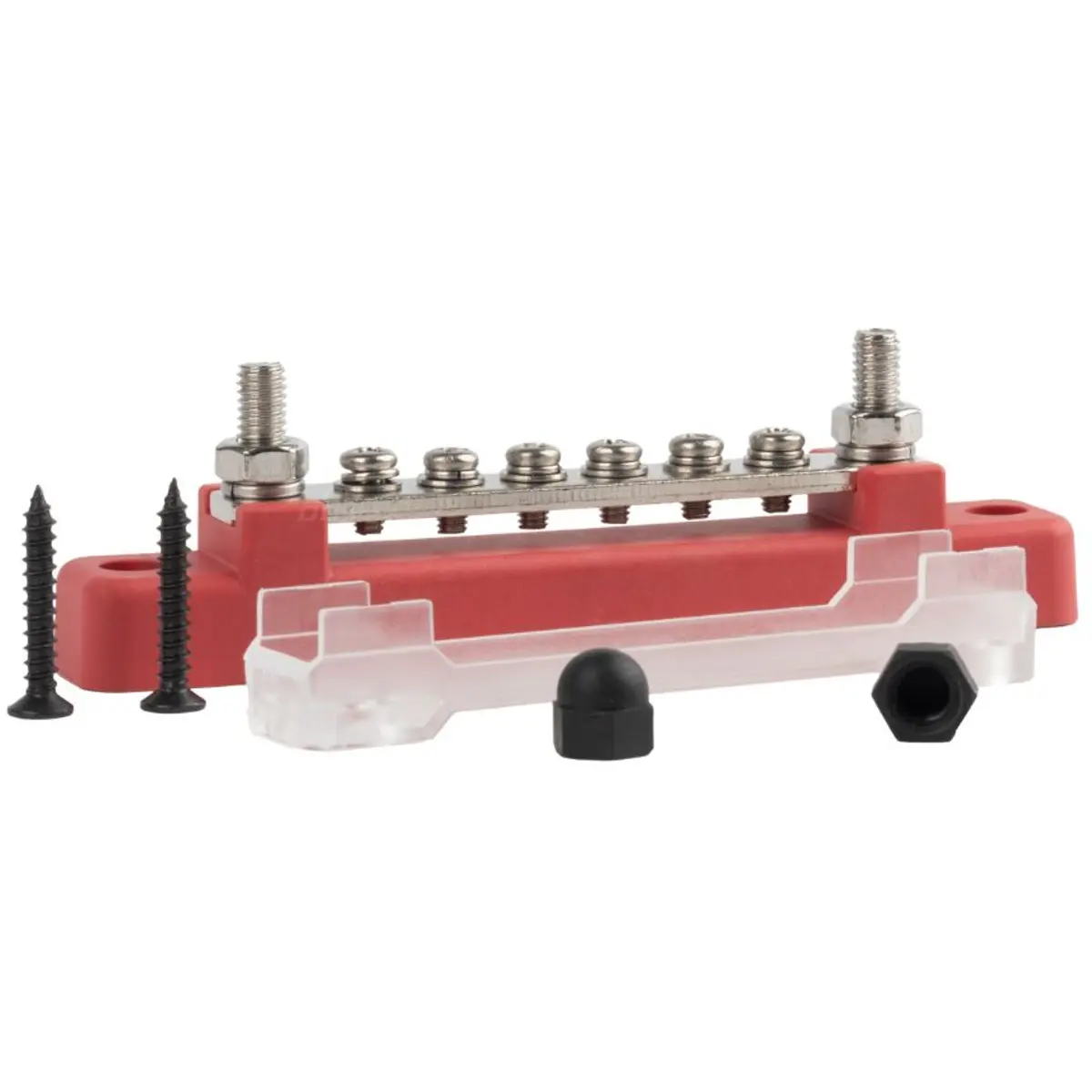 Barramento de distribuição DC (BUS BAR) 6xM4 + 2xM6 - 12/48V 150A - Vermelho Barramento de distribuição DC (BUS BAR) 6xM4 + 2xM6 - 12/48V 150A - Vermelho Barramento de distribuição DC (BUS BAR) 6xM4 + 2xM6 - 12/48V 150A - Vermelho