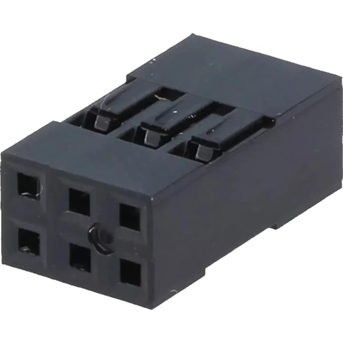 Conector fêmea de 6 pinos com montagem para cabo, configuração 2x5 e passo de 2,54 mm. Adequado a ligações elétricas compactas, com largura de 12,7 mm; variante sem contactos facilita soluções sob medida e a integração com outros componentes, ideal para painéis e cablagens que exigem uma tomada modular, fiável e de montagem simples.