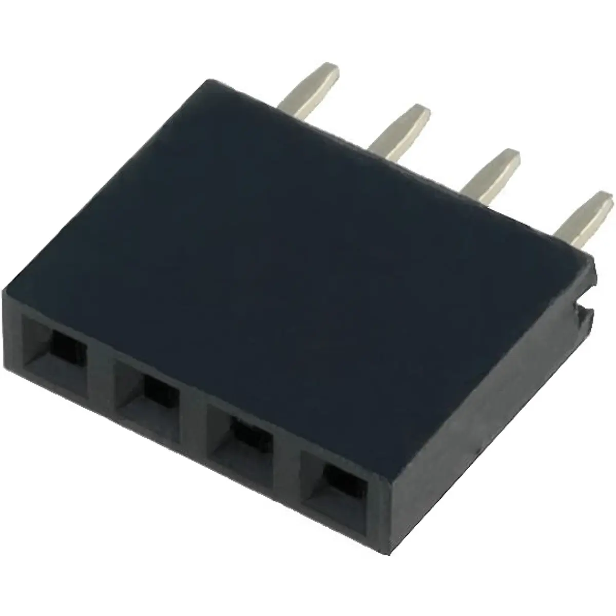 Conector fêmea de PCB com 4 pinos em configuração 1x4 e pitch de 2.54mm, montagem através de furos (THT). Orientação direita e altura de 8.5mm, fornecendo corrente máxima de 3A para ligações estáveis entre componentes. Adequado para placas de circuito impresso que exigem uma ligação fêmea de 4 vias com montagem THT.