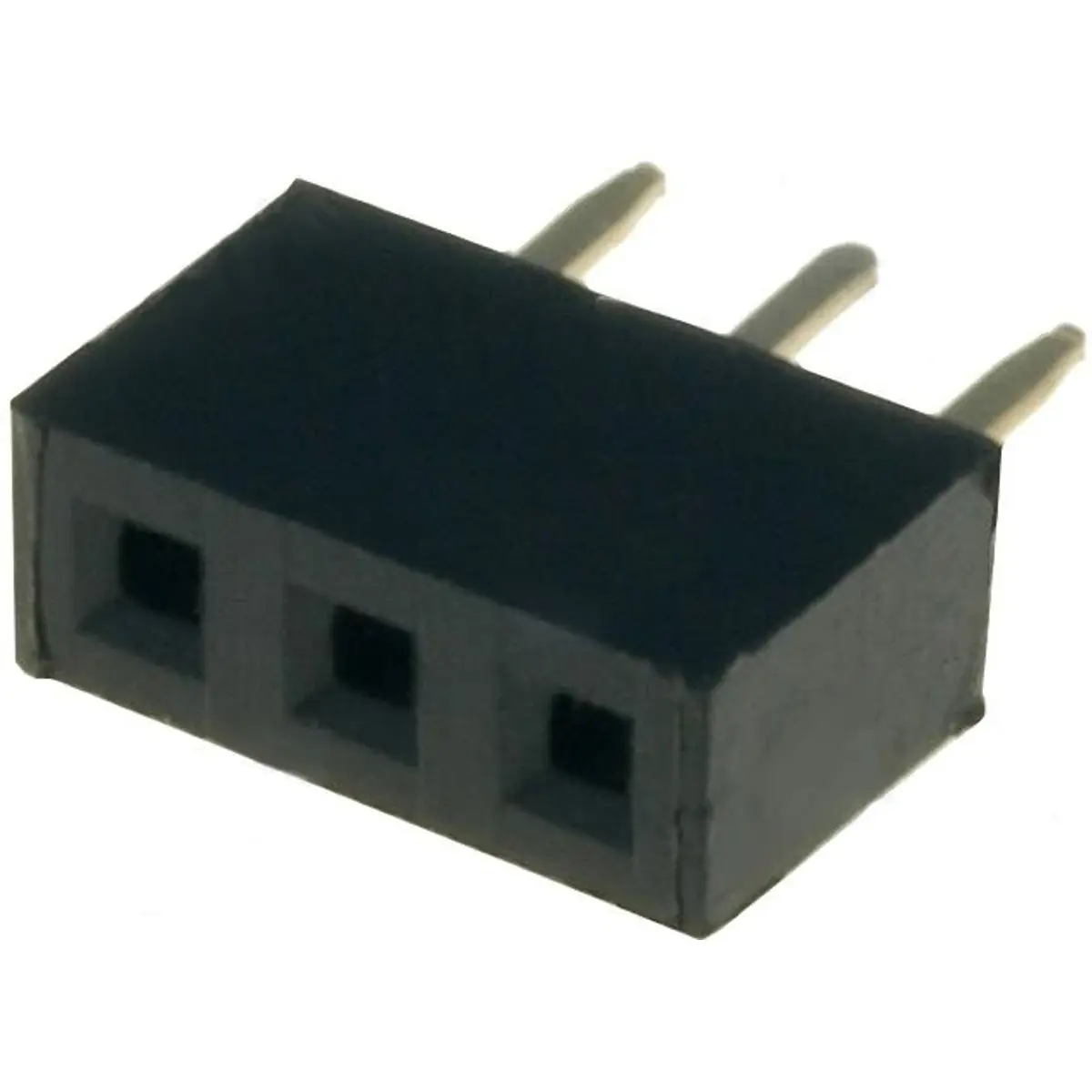 Conector fêmea para PCB com 3 pinos, configuração 1x3 e passo de 2,0 mm. Montagem THT permite fixação direta na placa, com altura de 4,5 mm e orientação direita para facilitar o alinhamento em layouts. Ideal para ligações de sinal ou alimentação em sistemas com conectores de 2,0 mm de passo, oferecendo uma solução compacta, confiável e de montagem simples.