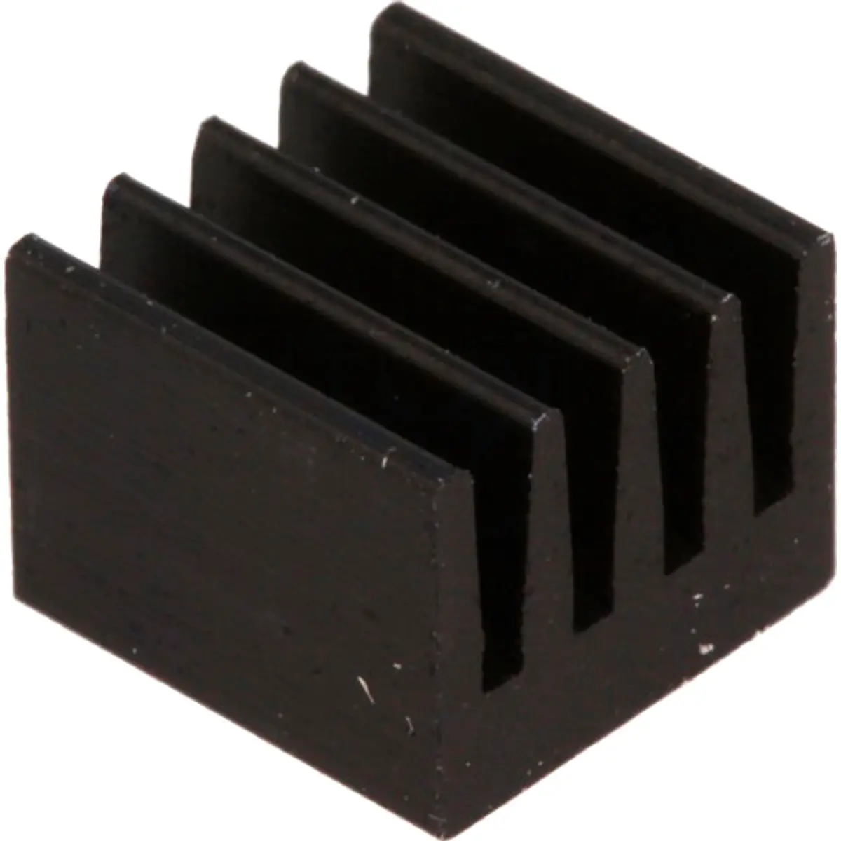 Dissipador de calor em alumínio anodizado preto, com dimensões 8x8x6 mm e resistência térmica de 74 K/W. Ideal para dissipar calor em componentes eletrônicos compactos, oferecendo acabamento durável e estética elegante. Construção leve e compatível com aplicações de montagem em PCB, aproveitando o acabamento anodizado para maior resistência à corrosão e durabilidade.