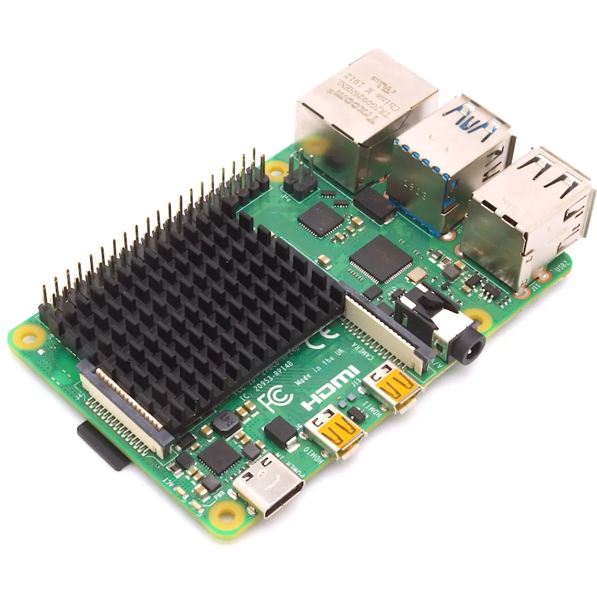 Dissipador de calor adequado para o Raspberry Pi 4 que garante perfeita dissipação de calor durante tarefas que exigem muito desempenho. A fita adesiva na parte inferior permite uma instalação muito fácil. Simplesmente retire a película protetora e cole-a.
